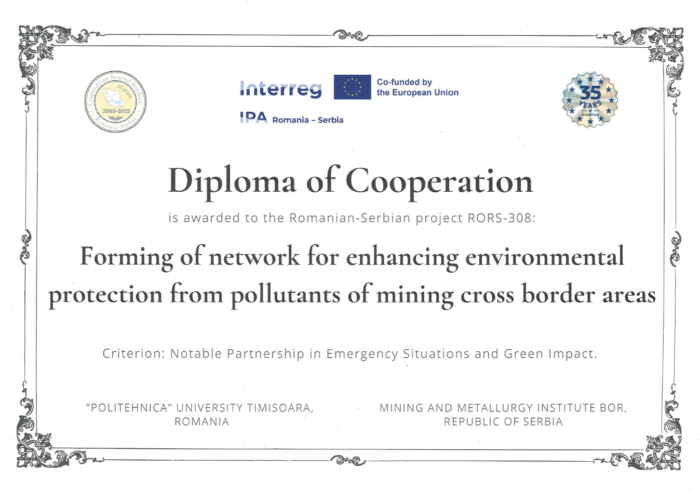 Projekat NETMIN RORS-308 „Formiranje mreže za unapređenje zaštite životne sredine od zagađivača u prekograničnim rudarskim područjima“, sufinansiran kroz Interreg IPA Program prekogranične saradnje Rumunija–Srbija, razvijen je i realizovan od strane Politehničkog univerziteta u Temišvaru (vodeći partner) i Instituta za rudarstvo i metalurgiju Bor (projektni partner).